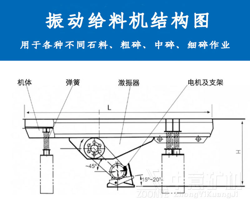 振動給料機由機身、彈簧、彈簧底座、激振器、振動電機、振條組成。