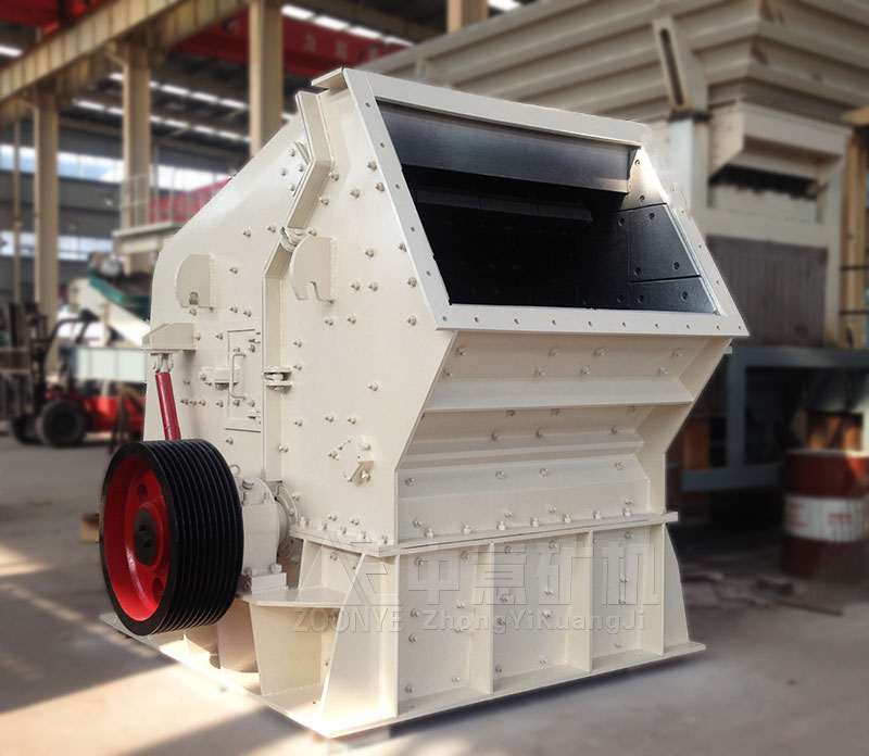 反擊破碎機經過三角帶傳動帶動轉子高速運轉,物料自入料口進入破碎腔內,被高速旋轉的錘頭打擊,沖擊渦旋破碎,未被充分破碎的大塊物料,在P破碎腔部的厚反擊板與錘頭作用下產生大的壓力與彎曲力,即使很難破碎的物料也能輕易被粗碎后進入下段S破碎腔和T段破碎腔,物料在此二破碎腔內受到摩擦、擠壓、沖擊、折斷、而得到中、細碎后排除機體。