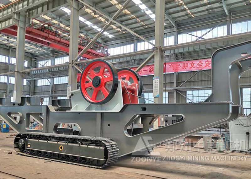 鄂式履帶式移動破碎站所有部件機載,包括:牢固的機架、鄂式破破碎機、給料機、振動篩、傳送帶、電動機和控制箱等。
